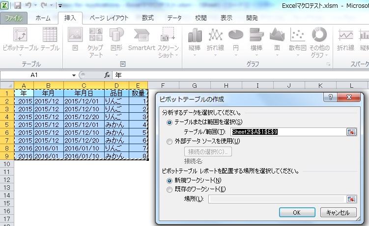【Excelマクロ(VBa)】ピボットテーブルの作成